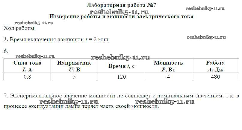 Готовая домашняя работа с ответами по Физике за 8 класс Громов, Родина, Белага Учебник Просвещение 2018 ФГОС - Лабораторные работы ЛР №7. Измерение работы и мощности электрического тока