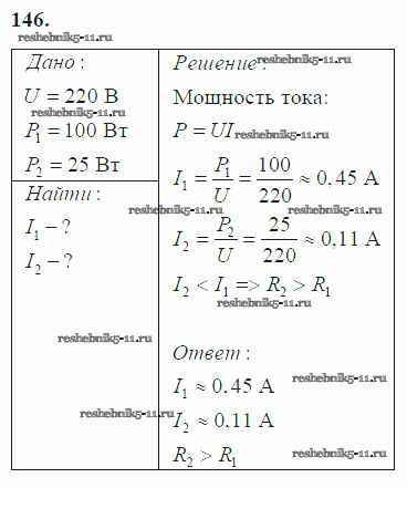 Готовая домашняя работа с ответами по Физике за 8 класс Громов, Родина, Белага Учебник Просвещение 2018 ФГОС - Задания 146
