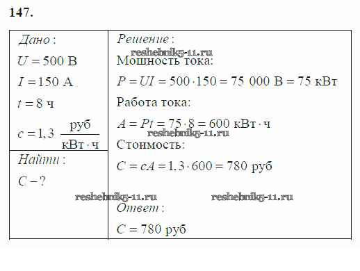 Готовая домашняя работа с ответами по Физике за 8 класс Громов, Родина, Белага Учебник Просвещение 2018 ФГОС - Задания 147