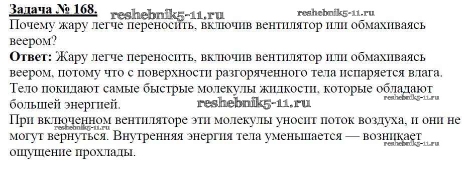 Физика за 8 класс Громов Учебник Просвещение задание 168