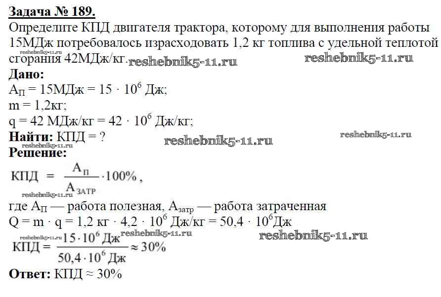Готовая домашняя работа с ответами по Физике за 8 класс Громов, Родина, Белага Учебник Просвещение 2018 ФГОС - Задания 189