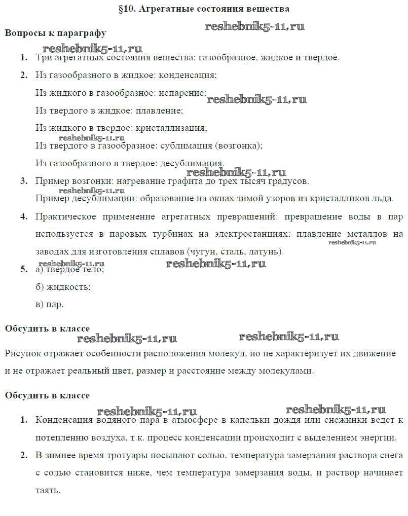 Готовая домашняя работа с ответами по Физике за 8 класс Громов, Родина, Белага Учебник Просвещение 2018 ФГОС - Параграфы § 10. Агрегатные состояния вещества