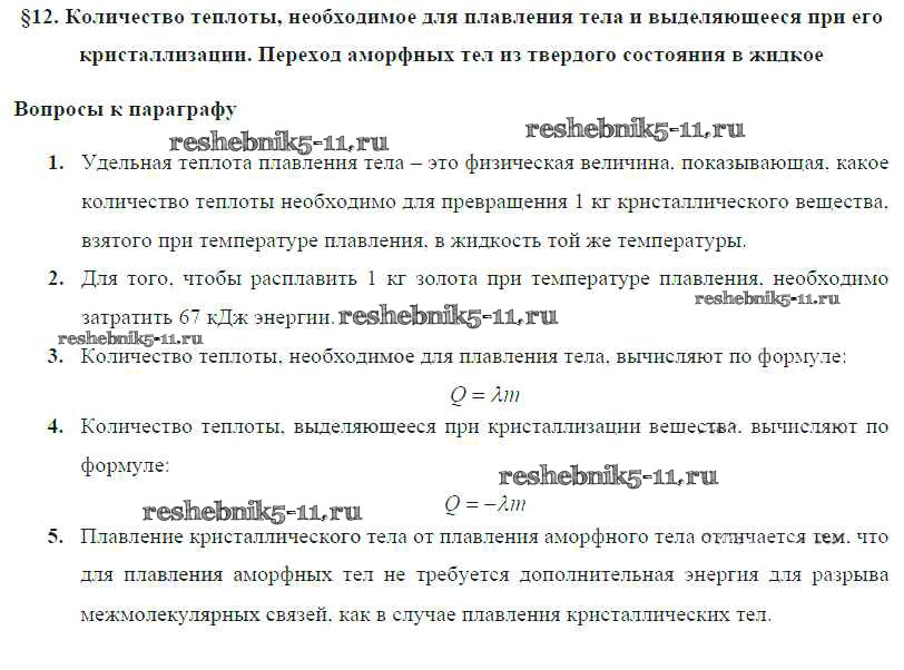 § 12. Количество теплоты, необходимое для плавления тела и выделяющееся при его кристаллизации