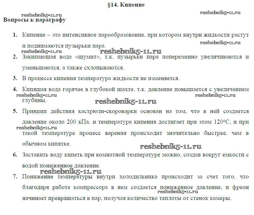 Готовая домашняя работа с ответами по Физике за 8 класс Громов, Родина, Белага Учебник Просвещение 2018 ФГОС - Параграфы § 14. Кипение