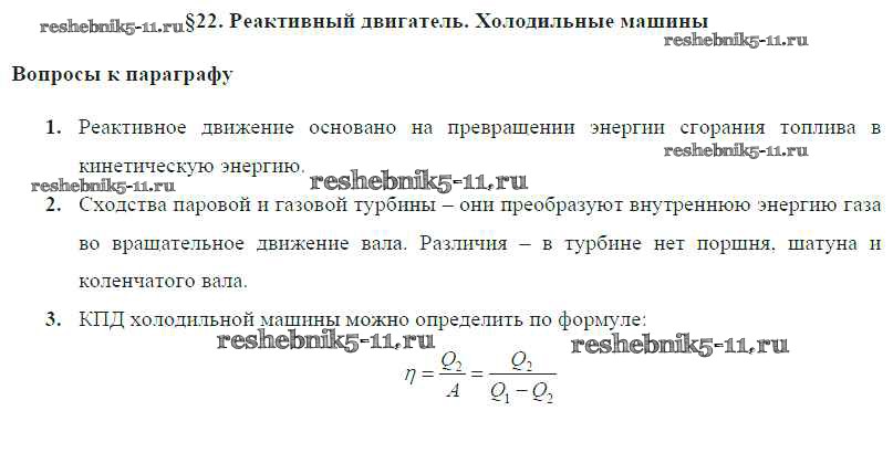 Готовая домашняя работа с ответами по Физике за 8 класс Громов, Родина, Белага Учебник Просвещение 2018 ФГОС - Параграфы § 22. Реактивный двигатель. Холодильные машины