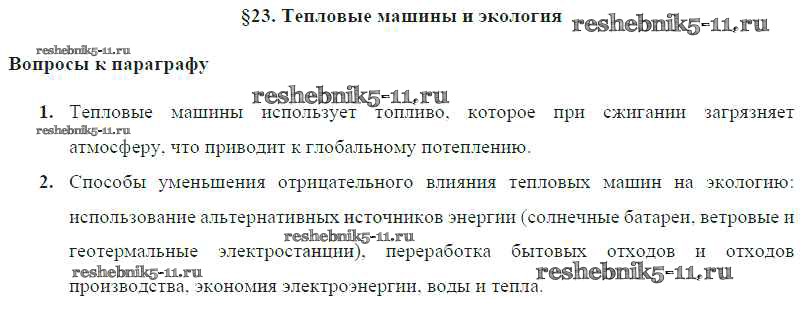 Готовая домашняя работа с ответами по Физике за 8 класс Громов, Родина, Белага Учебник Просвещение 2018 ФГОС - Параграфы § 23. Тепловые машины и экология