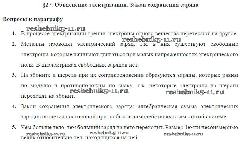Готовая домашняя работа с ответами по Физике за 8 класс Громов, Родина, Белага Учебник Просвещение 2018 ФГОС - Параграфы § 27. Объяснение электризации. Закон сохранения заряда
