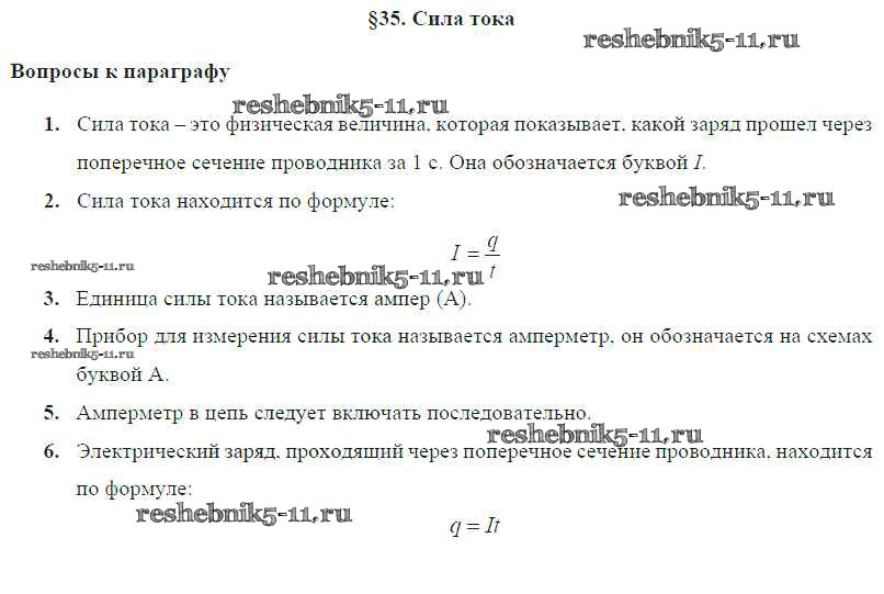 Готовая домашняя работа с ответами по Физике за 8 класс Громов, Родина, Белага Учебник Просвещение 2018 ФГОС - Параграфы § 35. Сила тока