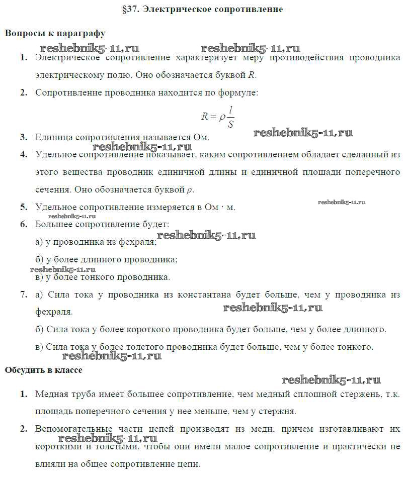 Готовая домашняя работа с ответами по Физике за 8 класс Громов, Родина, Белага Учебник Просвещение 2018 ФГОС - Параграфы § 37. Электрическое сопротивление