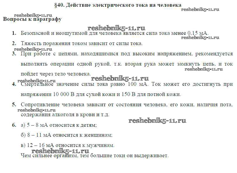 Готовая домашняя работа с ответами по Физике за 8 класс Громов, Родина, Белага Учебник Просвещение 2018 ФГОС - Параграфы § 40. Действие электрического тока на человека