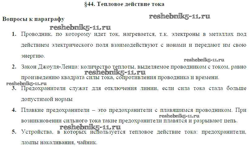 Готовая домашняя работа с ответами по Физике за 8 класс Громов, Родина, Белага Учебник Просвещение 2018 ФГОС - Параграфы § 44. Тепловое действие тока