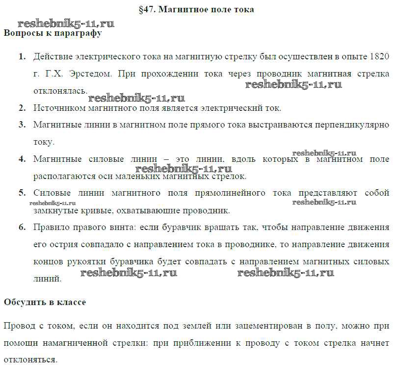 Готовая домашняя работа с ответами по Физике за 8 класс Громов, Родина, Белага Учебник Просвещение 2018 ФГОС - Параграфы § 47. Магнитное поле тока