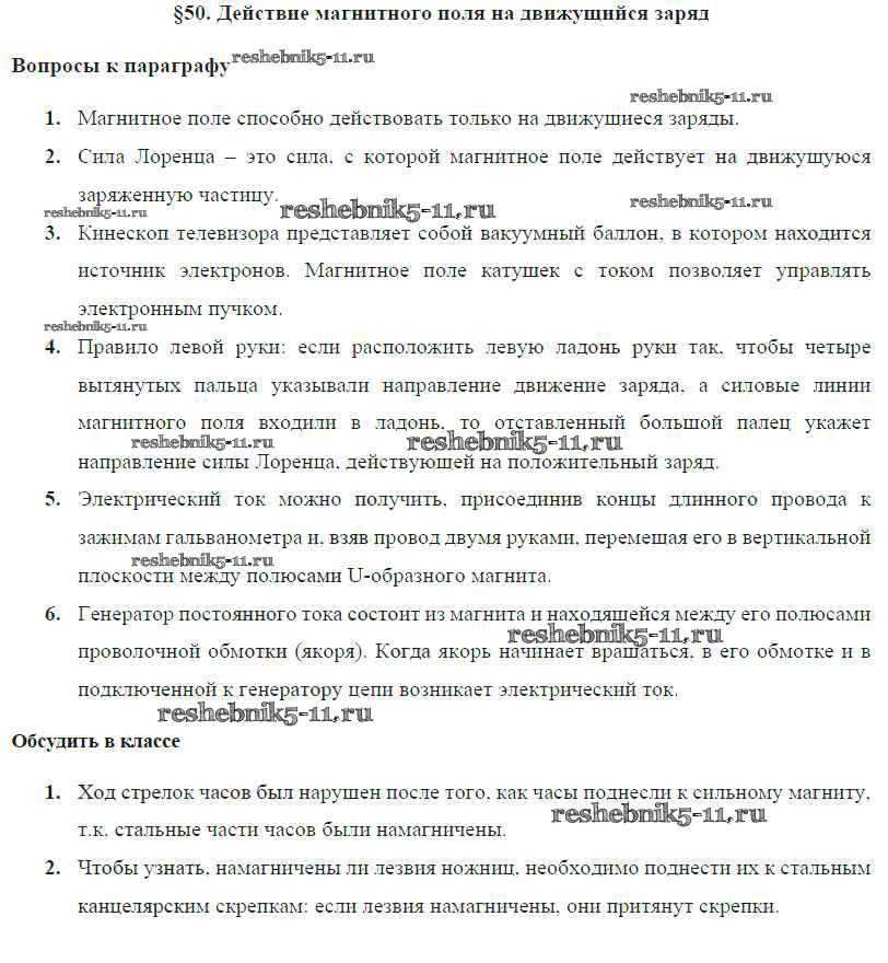Готовая домашняя работа с ответами по Физике за 8 класс Громов, Родина, Белага Учебник Просвещение 2018 ФГОС - Параграфы § 50. Действие магнитного поля на движущийся заряд
