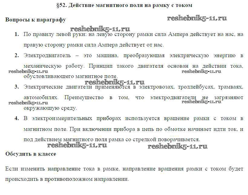 Готовая домашняя работа с ответами по Физике за 8 класс Громов, Родина, Белага Учебник Просвещение 2018 ФГОС - Параграфы § 52. Действие магнитного поля на рамку с током