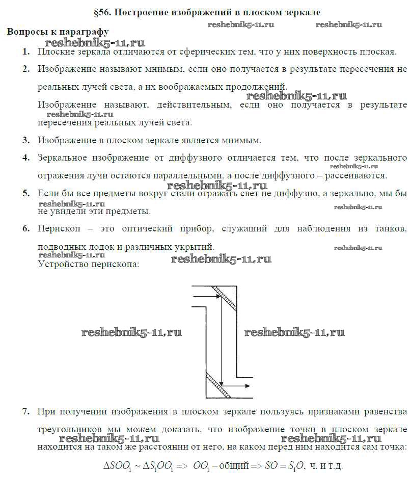 Готовая домашняя работа с ответами по Физике за 8 класс Громов, Родина, Белага Учебник Просвещение 2018 ФГОС - Параграфы § 56. Построение изображений в плоском зеркале