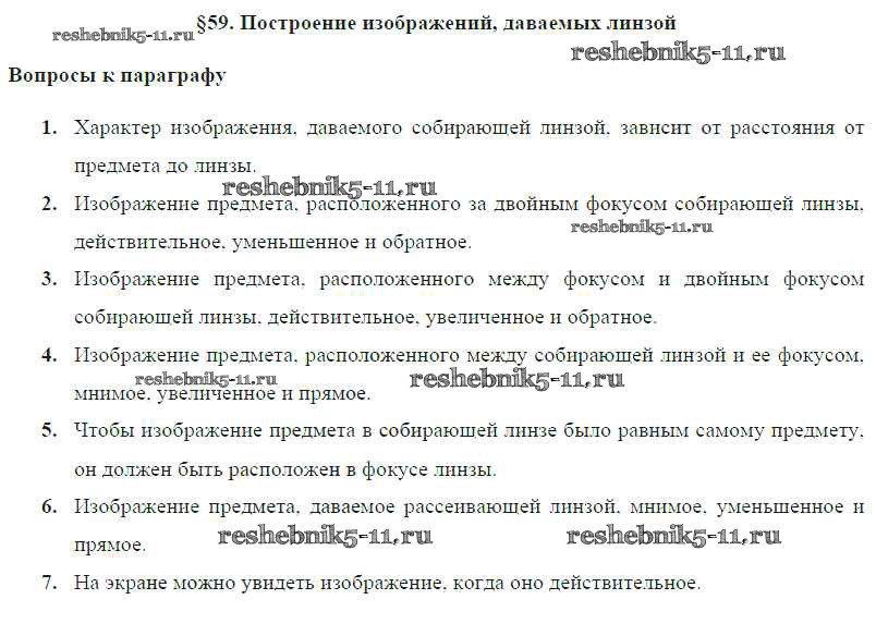 Готовая домашняя работа с ответами по Физике за 8 класс Громов, Родина, Белага Учебник Просвещение 2018 ФГОС - Параграфы § 59. Построение изображений, даваемых линзой