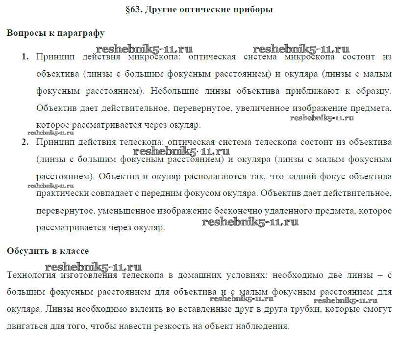 Готовая домашняя работа с ответами по Физике за 8 класс Громов, Родина, Белага Учебник Просвещение 2018 ФГОС - Параграфы § 63. Другие оптические приборы