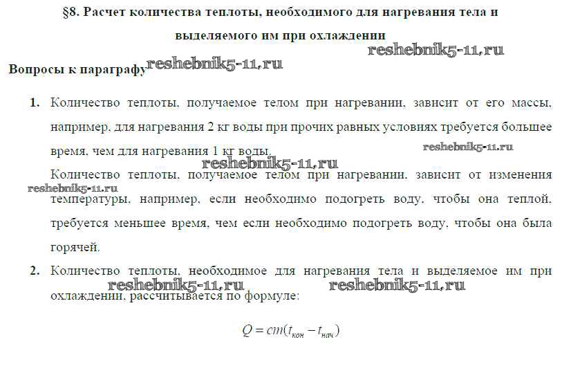 Готовая домашняя работа с ответами по Физике за 8 класс Громов, Родина, Белага Учебник Просвещение 2018 ФГОС - Параграфы § 8. Расчет количества теплоты, необходимого для нагревания тела и выделяемого им при охлаждении