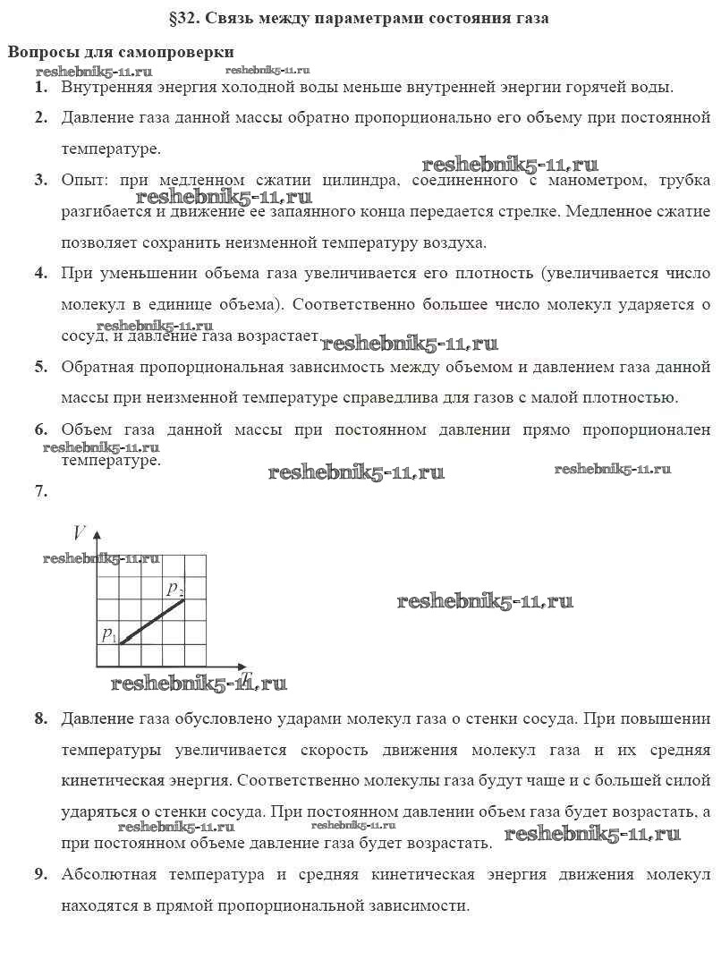Готовая домашняя работа с ответами по Физике за 8 класс Пурышева, Важеевская Учебник Вертикаль Дрофа 2017 ФГОС - Вопросы к параграфам § 32. Связь между параметрами состояния газа