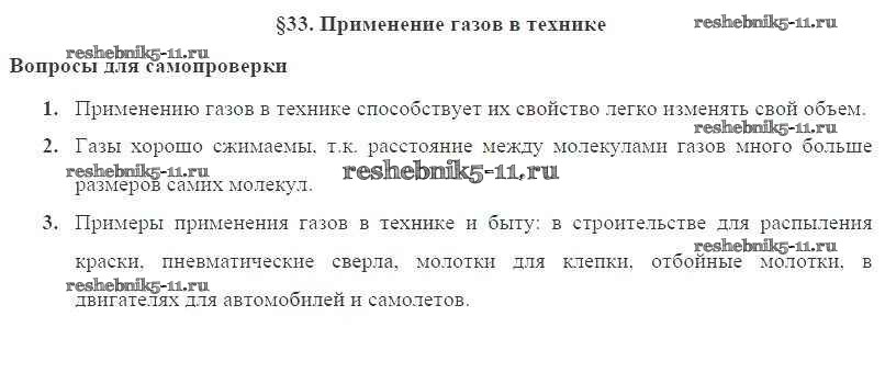 Готовая домашняя работа с ответами по Физике за 8 класс Пурышева, Важеевская Учебник Вертикаль Дрофа 2017 ФГОС - Вопросы к параграфам § 33. Применение газов в технике