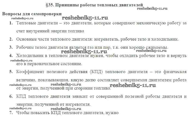 Физика за 8 класс Пурышева Учебник Вертикаль Дрофа вопрос к § § 35. Принципы работы тепловых двигателей