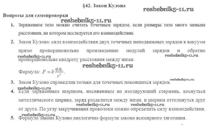 Готовая домашняя работа с ответами по Физике за 8 класс Пурышева, Важеевская Учебник Вертикаль Дрофа 2017 ФГОС - Вопросы к параграфам § 42. Закон Кулона