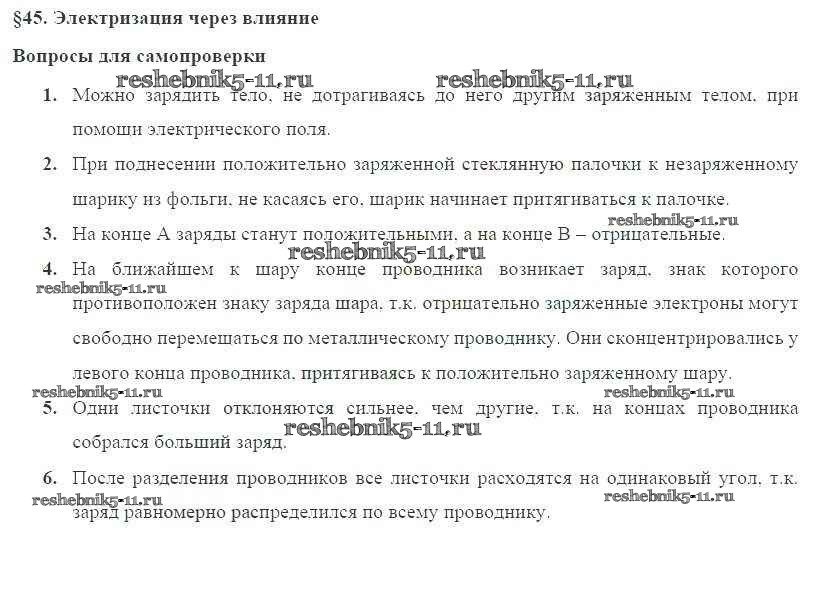 Физика за 8 класс Пурышева Учебник Вертикаль Дрофа вопрос к § § 45. Электризация через влияние