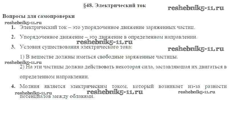 Готовая домашняя работа с ответами по Физике за 8 класс Пурышева, Важеевская Учебник Вертикаль Дрофа 2017 ФГОС - Вопросы к параграфам § 48. Электрический ток