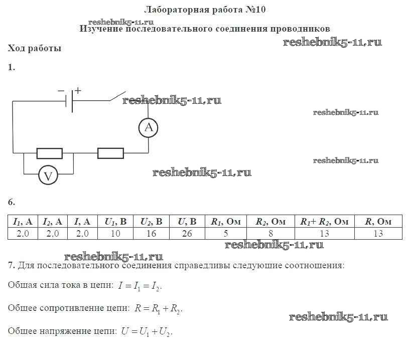 Готовая домашняя работа с ответами по Физике за 8 класс Пурышева, Важеевская Учебник Вертикаль Дрофа 2017 ФГОС - Лабораторные работы ЛР №10. Изучение последовательного соединения проводников