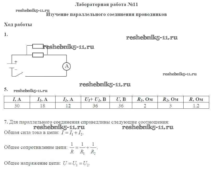 Готовая домашняя работа с ответами по Физике за 8 класс Пурышева, Важеевская Учебник Вертикаль Дрофа 2017 ФГОС - Лабораторные работы ЛР №11. Изучение параллельного соединения проводников