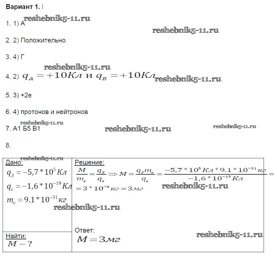 Готовая домашняя работа с ответами по Физике за 8 класс Громцева Контрольные и самостоятельные работы УМК Экзамен 2017 ФГОС - 2.1. Постоянный ток вариант-1