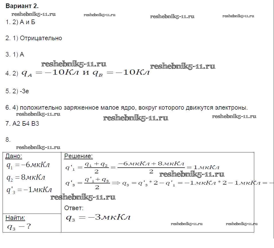 Готовая домашняя работа с ответами по Физике за 8 класс Громцева Контрольные и самостоятельные работы УМК Экзамен 2017 ФГОС - 2.1. Постоянный ток вариант-2