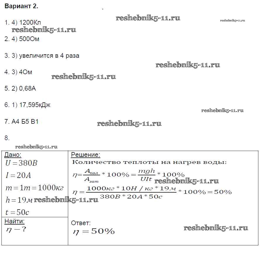 Готовая домашняя работа с ответами по Физике за 8 класс Громцева Контрольные и самостоятельные работы УМК Экзамен 2017 ФГОС - 2.2. Электрические явления вариант-2
