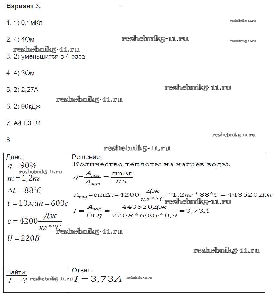 Готовая домашняя работа с ответами по Физике за 8 класс Громцева Контрольные и самостоятельные работы УМК Экзамен 2017 ФГОС - 2.2. Электрические явления вариант-3