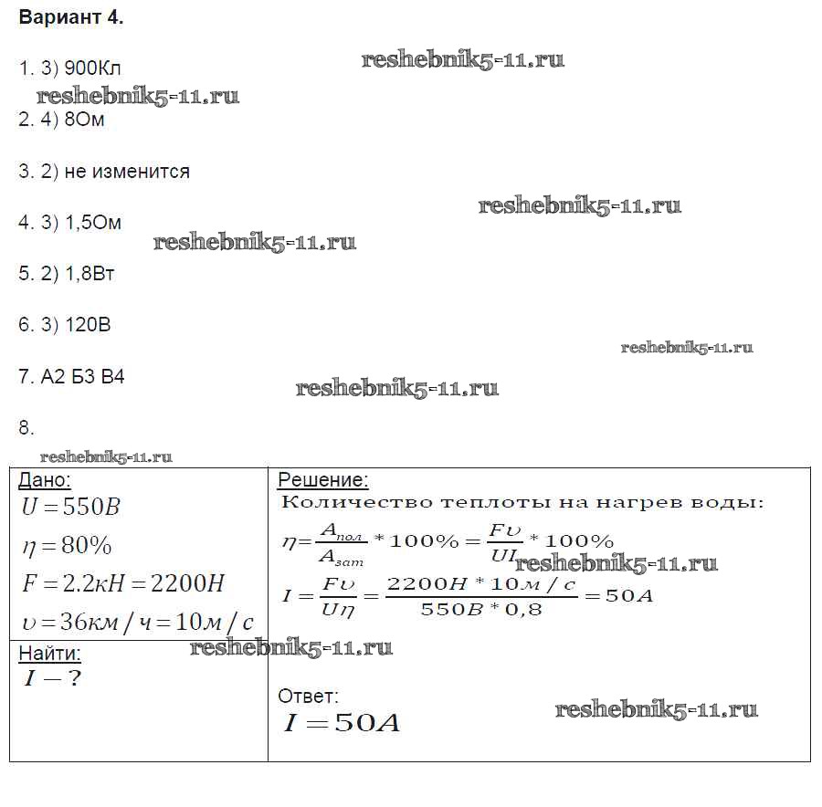 Готовая домашняя работа с ответами по Физике за 8 класс Громцева Контрольные и самостоятельные работы УМК Экзамен 2017 ФГОС - 2.2. Электрические явления вариант-4