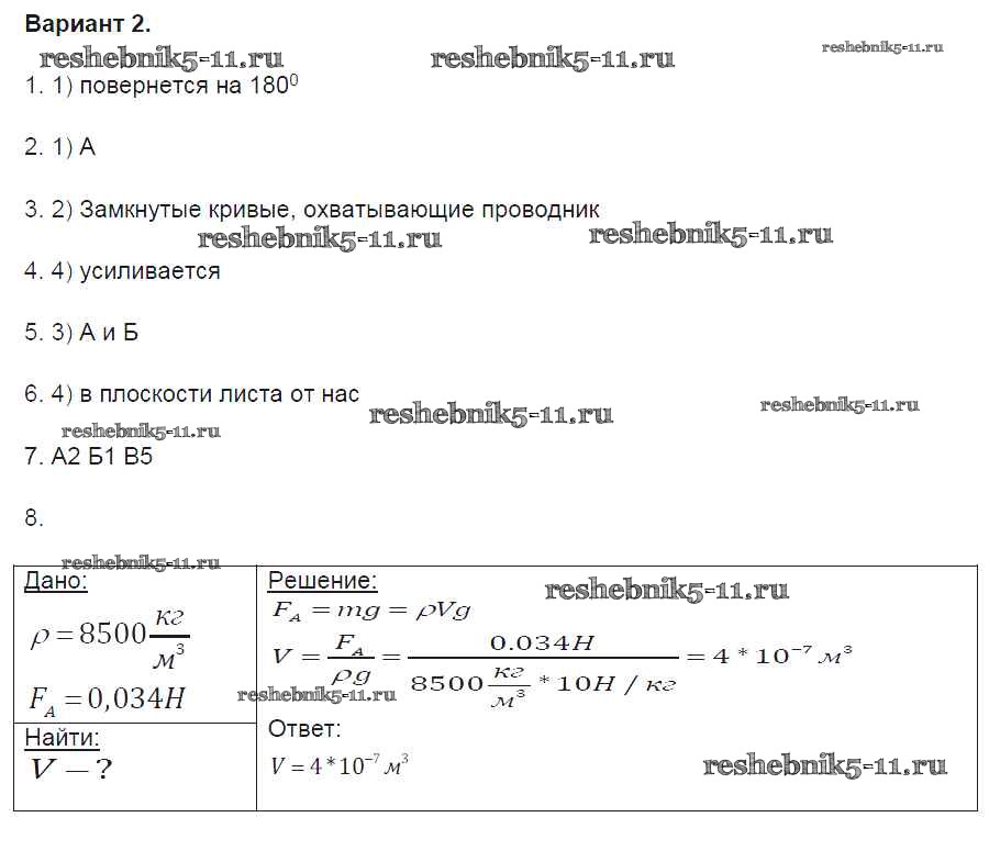 Готовая домашняя работа с ответами по Физике за 8 класс Громцева Контрольные и самостоятельные работы УМК Экзамен 2017 ФГОС - Глава 3. Электромагнитные явления вариант-2