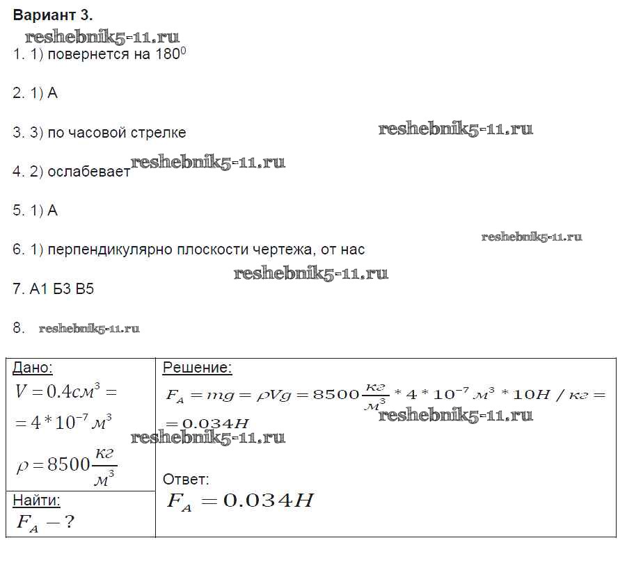 Готовая домашняя работа с ответами по Физике за 8 класс Громцева Контрольные и самостоятельные работы УМК Экзамен 2017 ФГОС - Глава 3. Электромагнитные явления вариант-3