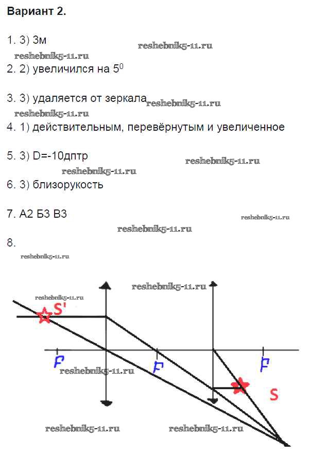 Готовая домашняя работа с ответами по Физике за 8 класс Громцева Контрольные и самостоятельные работы УМК Экзамен 2017 ФГОС - Глава 4. Световые явления вариант-2