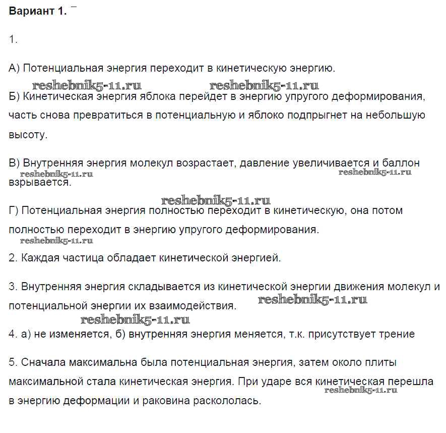Готовая домашняя работа с ответами по Физике за 8 класс Громцева Контрольные и самостоятельные работы УМК Экзамен 2017 ФГОС - СР №1. Тепловое движение. Температура. Внутренняя энергия вариант-1