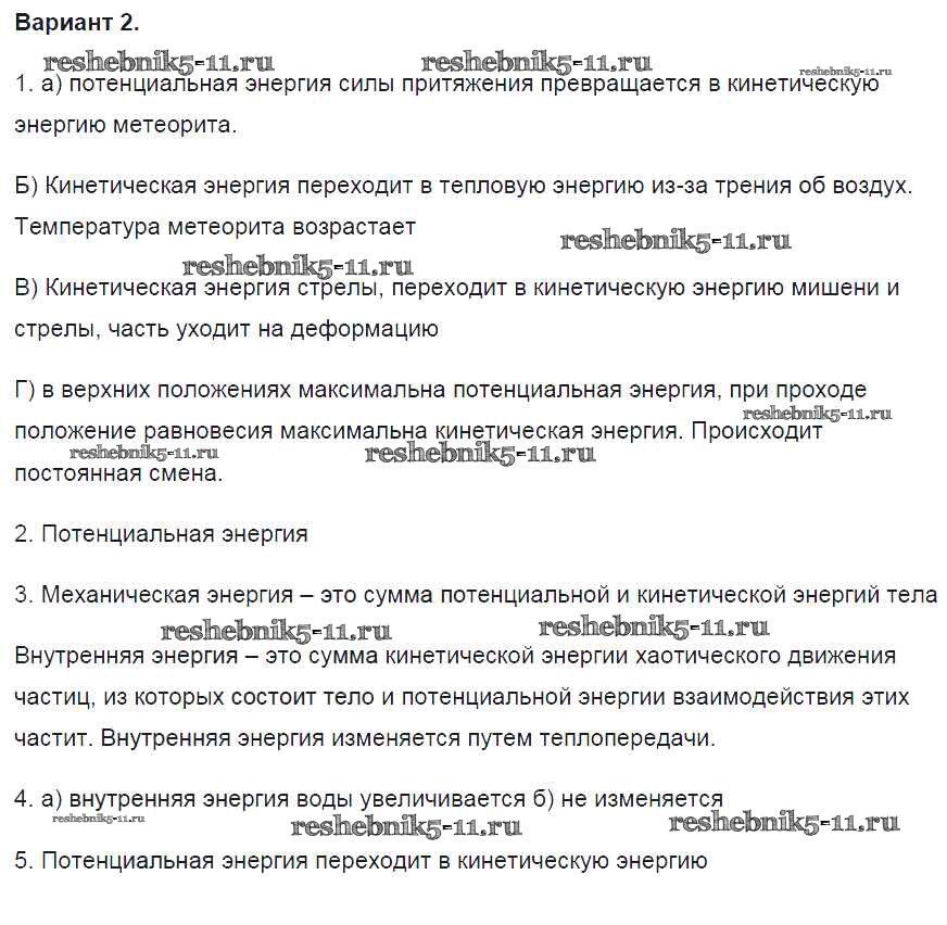 Готовая домашняя работа с ответами по Физике за 8 класс Громцева Контрольные и самостоятельные работы УМК Экзамен 2017 ФГОС - СР №1. Тепловое движение. Температура. Внутренняя энергия вариант-2