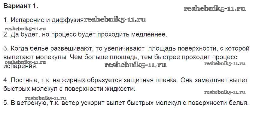 Готовая домашняя работа с ответами по Физике за 8 класс Громцева Контрольные и самостоятельные работы УМК Экзамен 2017 ФГОС - СР №13. Испарение. Насыщенный и ненасыщенный пар вариант-1