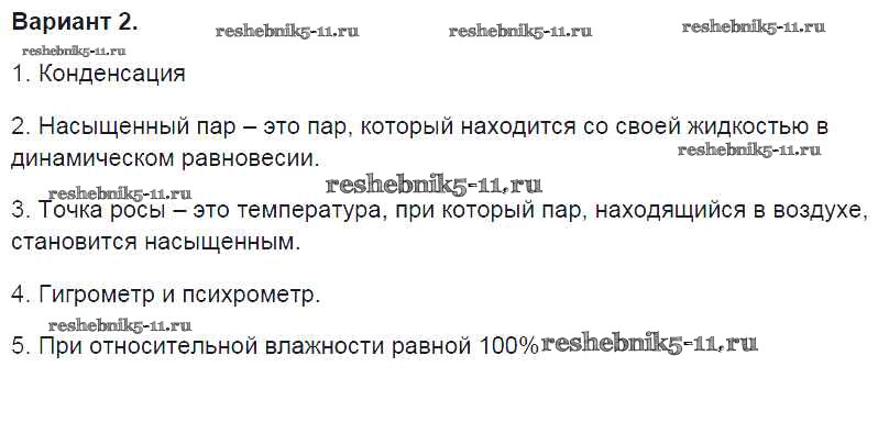 Готовая домашняя работа с ответами по Физике за 8 класс Громцева Контрольные и самостоятельные работы УМК Экзамен 2017 ФГОС - СР №16. Влажность воздуха вариант-2
