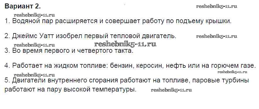 Готовая домашняя работа с ответами по Физике за 8 класс Громцева Контрольные и самостоятельные работы УМК Экзамен 2017 ФГОС - СР №20. Работа газа и пара при расширении. Двигатель внутреннего сгорания. Паровая турбина вариант-2