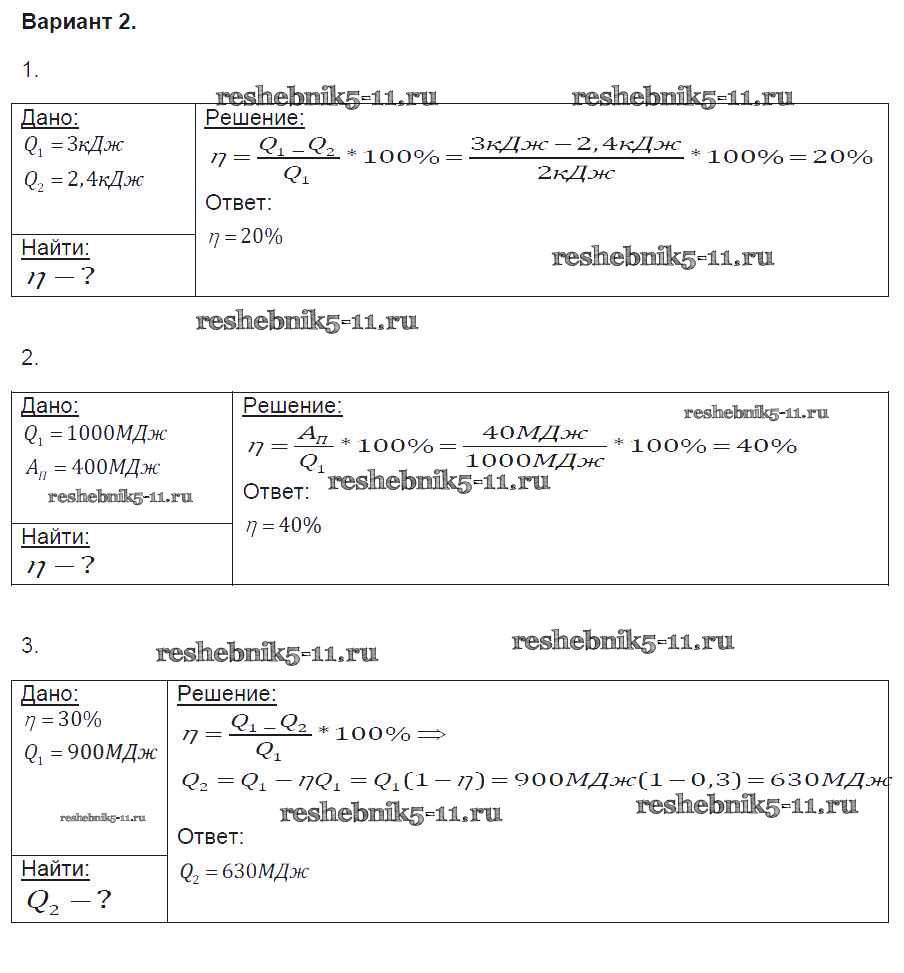 Готовая домашняя работа с ответами по Физике за 8 класс Громцева Контрольные и самостоятельные работы УМК Экзамен 2017 ФГОС - СР №21. КПД теплового двигателя вариант-2