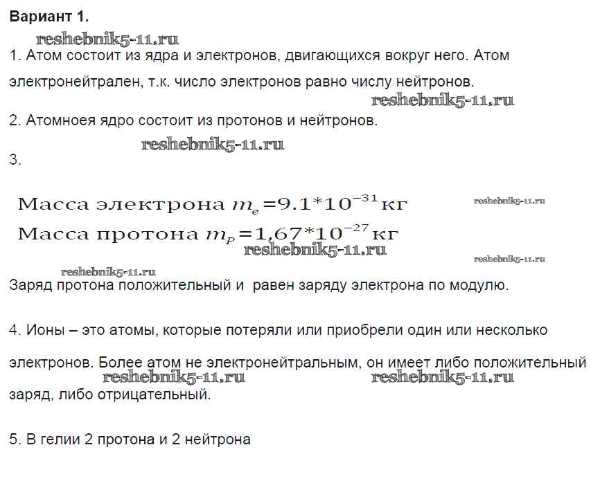 Готовая домашняя работа с ответами по Физике за 8 класс Громцева Контрольные и самостоятельные работы УМК Экзамен 2017 ФГОС - СР №25. Строение атомов вариант-1