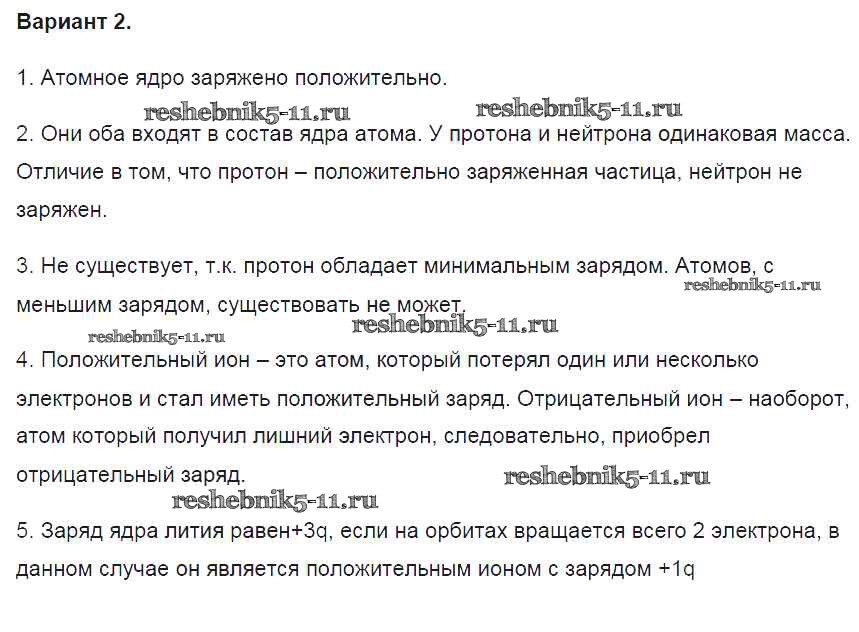 Готовая домашняя работа с ответами по Физике за 8 класс Громцева Контрольные и самостоятельные работы УМК Экзамен 2017 ФГОС - СР №25. Строение атомов вариант-2