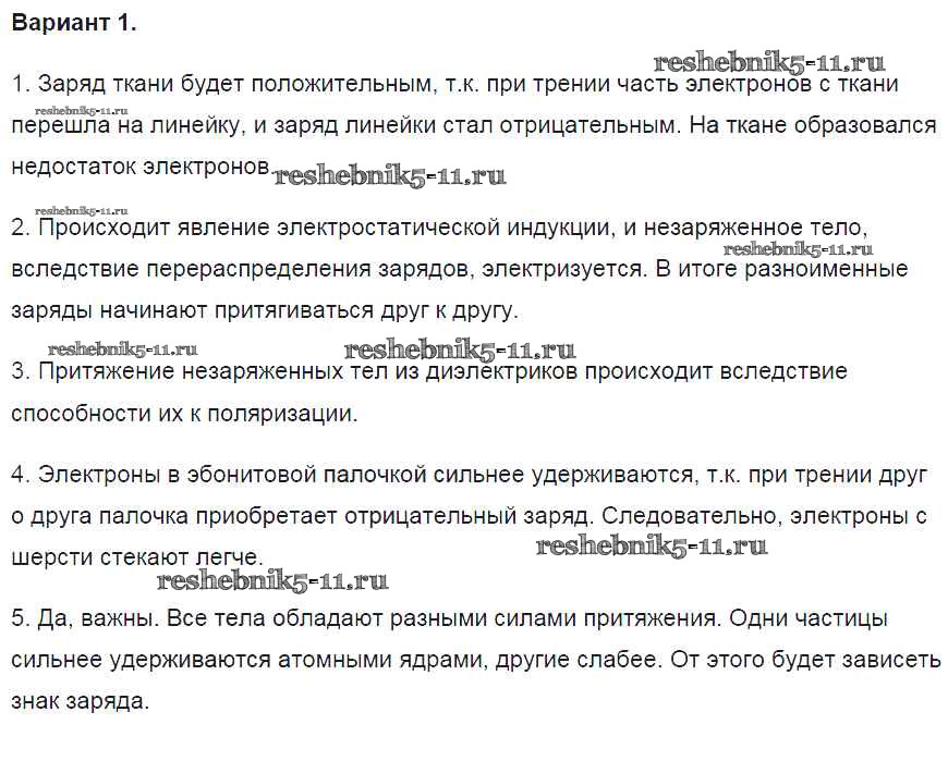 Готовая домашняя работа с ответами по Физике за 8 класс Громцева Контрольные и самостоятельные работы УМК Экзамен 2017 ФГОС - СР №26. Объяснение электрических явлений вариант-1