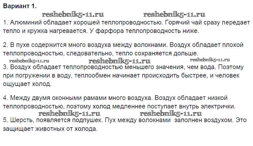 Готовая домашняя работа с ответами по Физике за 8 класс Громцева Контрольные и самостоятельные работы УМК Экзамен 2017 ФГОС - СР №3. Теплопроводность вариант-1