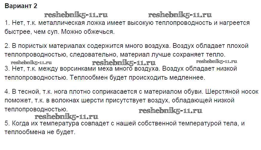 Готовая домашняя работа с ответами по Физике за 8 класс Громцева Контрольные и самостоятельные работы УМК Экзамен 2017 ФГОС - СР №3. Теплопроводность вариант-2