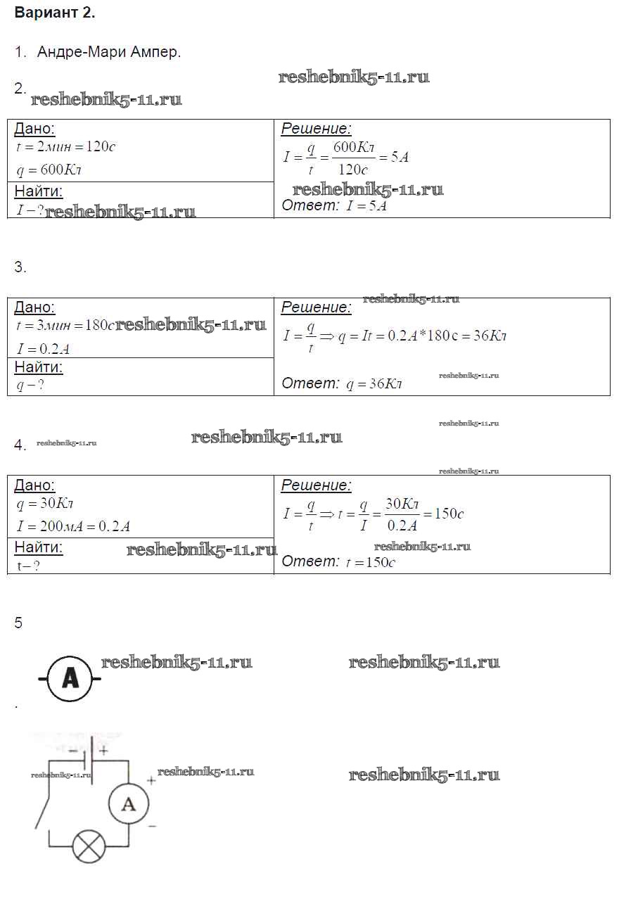 Готовая домашняя работа с ответами по Физике за 8 класс Громцева Контрольные и самостоятельные работы УМК Экзамен 2017 ФГОС - СР №30. Сила тока. Единицы силы тока. Амперметр. Измерение силы тока вариант-2
